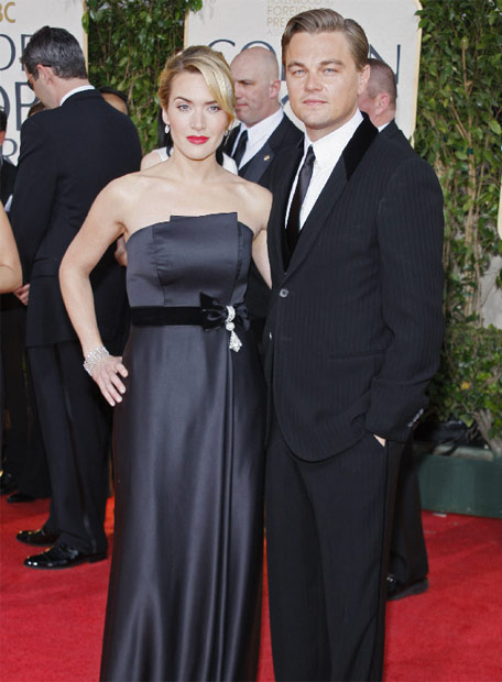 Llegada de Kate Winslet ganadora de los Globos de Oro a Mejor actriz de reparto y Mejor Actriz de Drama, acompañada de su compañero Leonardo di Caprio.