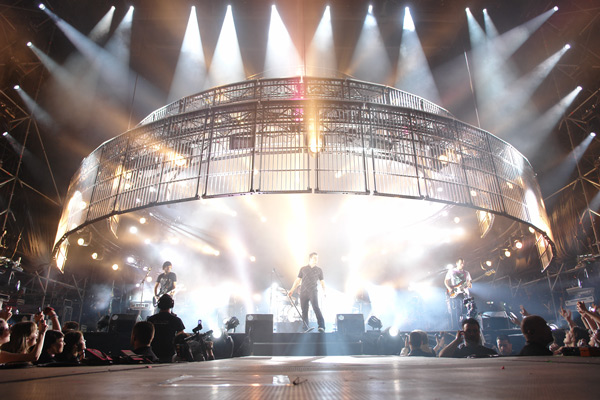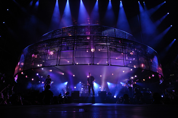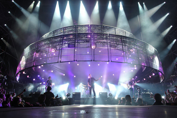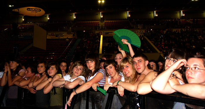 Puntuales como un reloj, con una puesta en escena soberbia. Una jaula de cinco alturas que se superponían unas encima de otras, simulando una tarta de cinco pisos, llena de juegos de luces sincronizados haciendo formas y dibujos varios e iniciando la cuenta atrás para el momento cero. Sube poco a poco la “jaula” y se ve a los cuatro “locos”, cada uno en su puesto… De fondo, el griterío de las cerca de 9.000 personas ahí congregadas, va en aumento. Todos visten de negro a excepción de Chema que luce una camiseta blanca con una ilustración de cómic. Se abre el show con “Personas”, la canción que da título a su último álbum y, tras ésta, la archiconocida “Insoportable” donde los fans, enloquecidos ya, corean y cantan de principio a fin. El entusiasmo es palpable en cada nota…