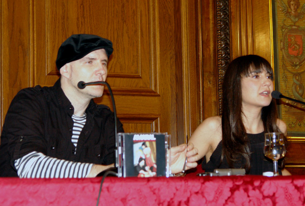 A las 13:40 del mediodía, con retraso por problemas con el AVE, Juan Aguirre y Eva Amaral vestidos de negro, ella muy guapa y estilizada ,entraban al Salón del Trono del Palacio de Sástago de Zaragoza. En primer lugar pidiendo disculpas a los medios por la tardanza y accediendo a responder todas las preguntas.