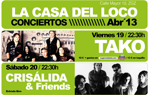 TAKO Y CRISÁLIDA este fin de semana en La Casa del Loco.